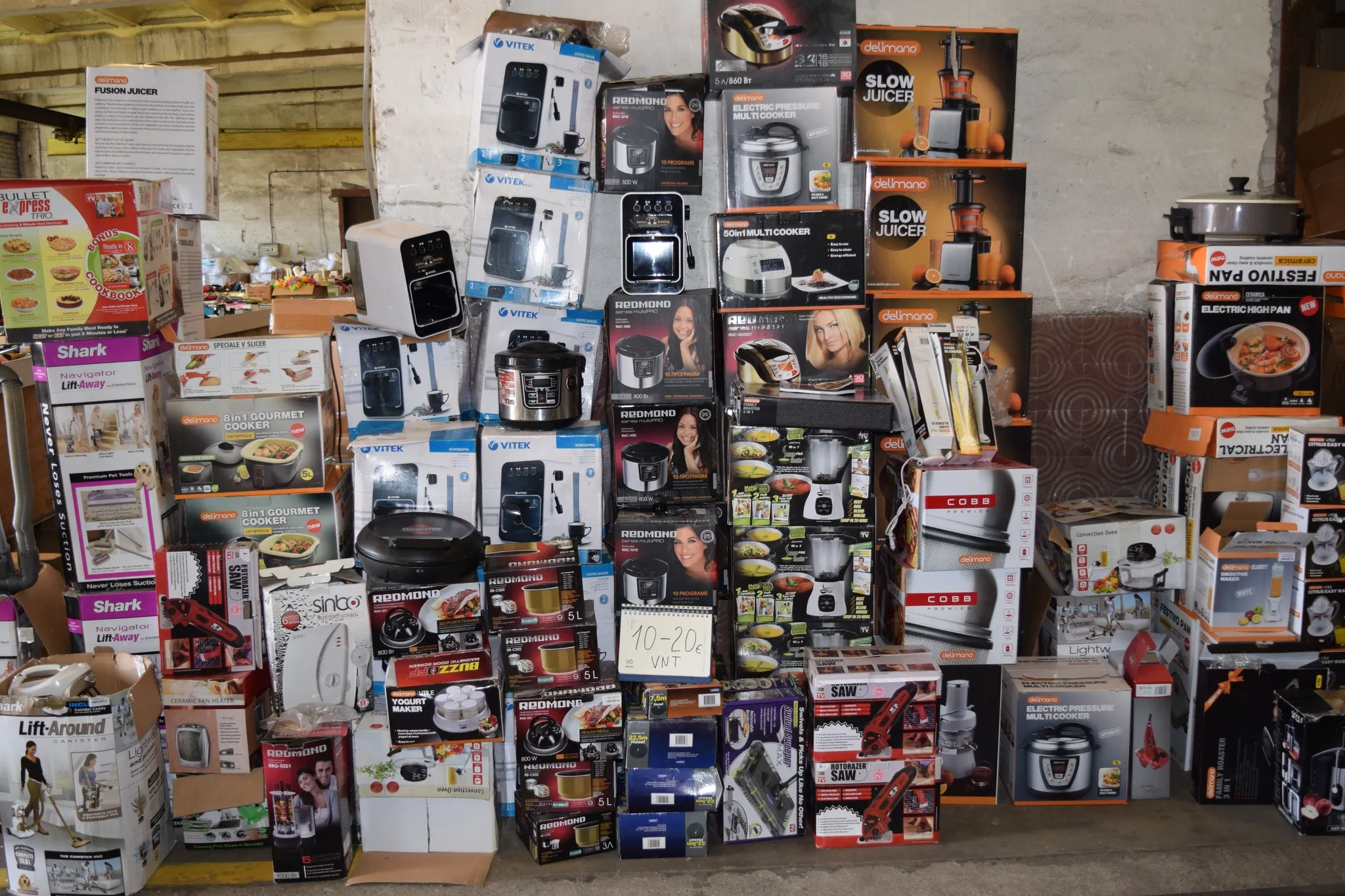 Įvairūs buitiniai prietaisai ir virtuvės technika sandėlyje