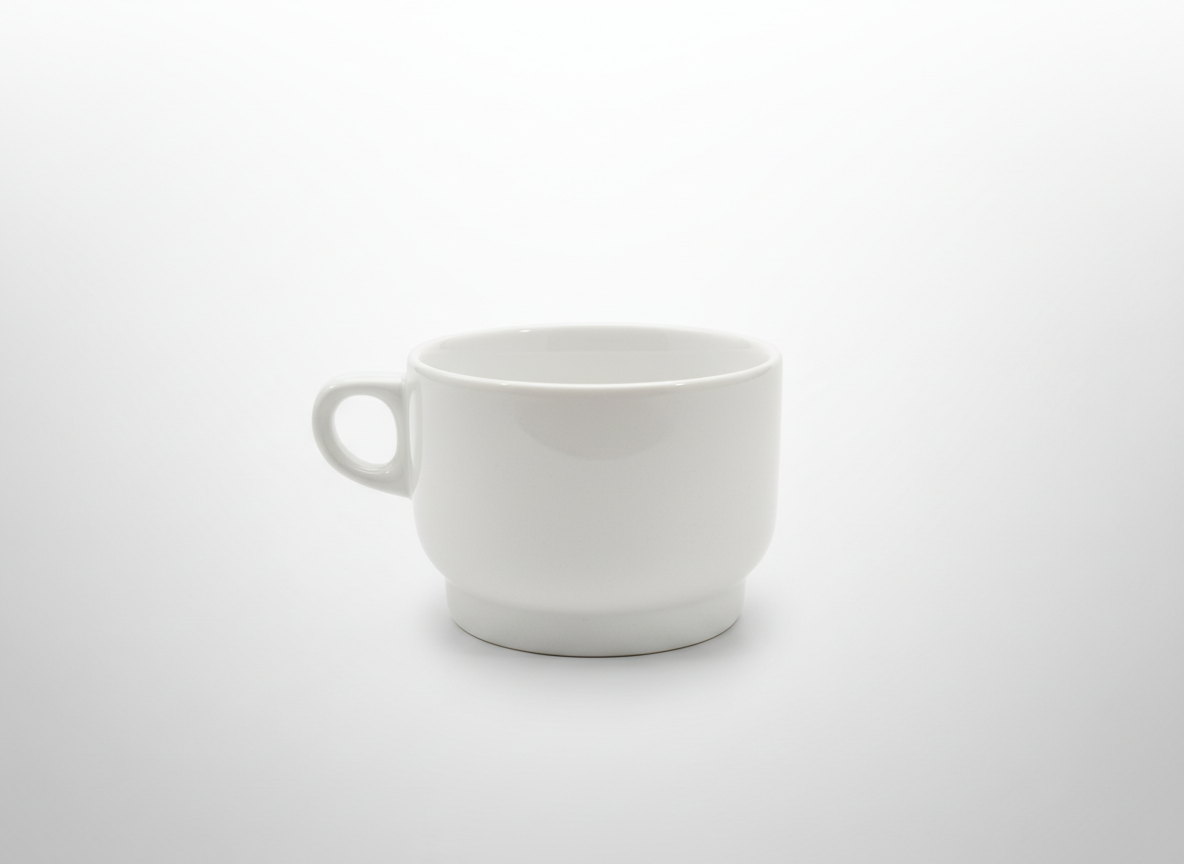 Paprastas, funkcionalus balta 260 ml puodelis, tinkantis kasdieniam naudojimui namuose, biure ar kavinėje. Neutralus dizainas lengvai dera su kitais indais ir stalo serviravimu.