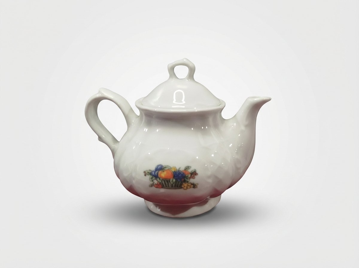 Ši kompaktiška balta arbatinukė yra puikus pasirinkimas mėgstantiems jaukias arbatos ar kavos pertraukėles. Ant arbatinukės šono pavaizduotas spalvingas vaisių krepšelis, suteikiantis stalo serviravimui žaismingumo ir klasikinių detalių.