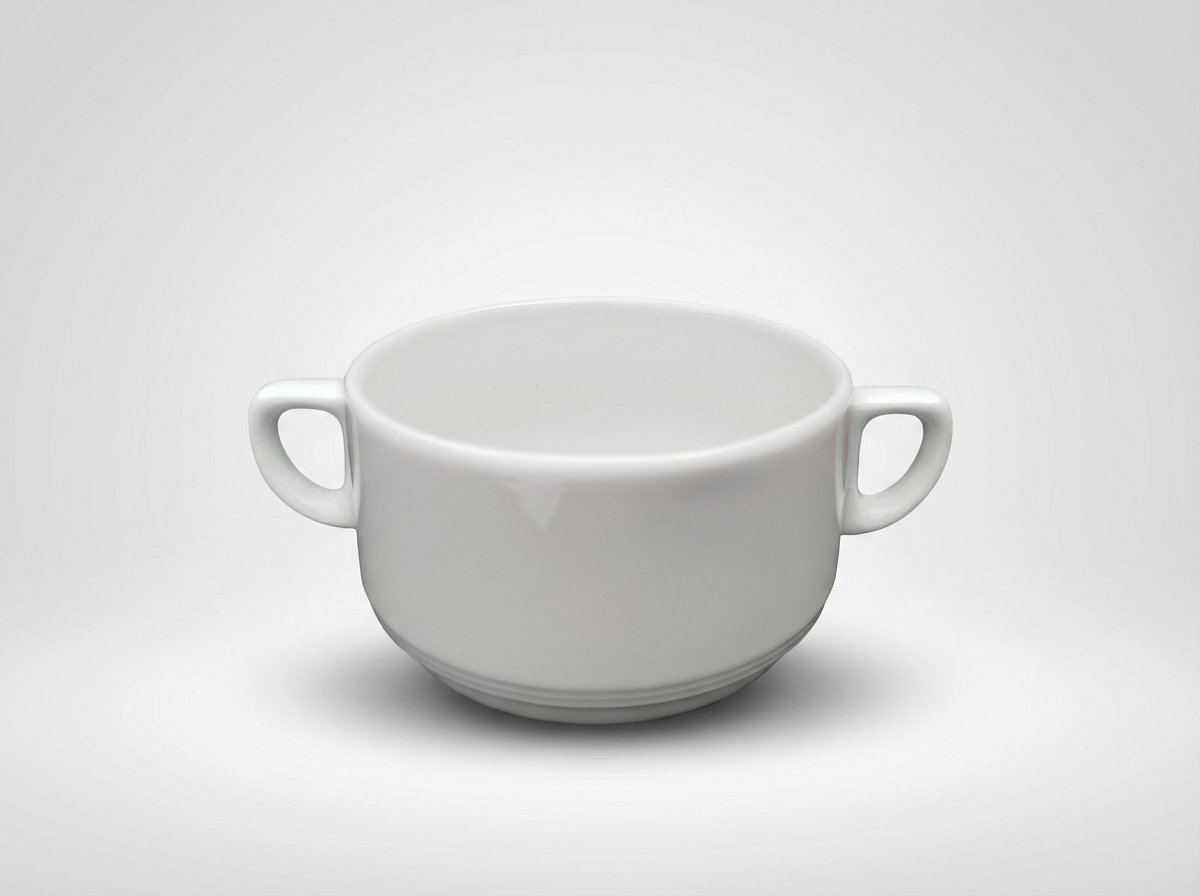 Šis praktiškas baltas dubenėlis su dviem ąselėmis yra patogus pasirinkimas tiek sriubai, tiek kitiems karštiems ar šaltiems patiekalams patiekti. Dėl neutralios spalvos jis lengvai dera su įvairiais indais ir stalo reikmenimis.