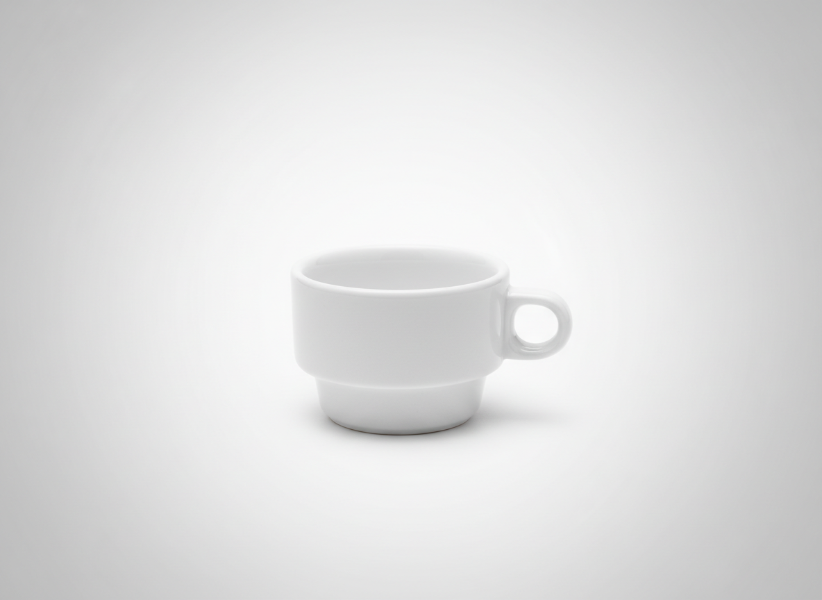 Ši balta keramikinė puodelis 110 ml idealiai tinka mažoms kavos ar arbatos porcijoms. Kompaktiškas aukštis 5 cm ir 7,5 cm skersmuo leidžia puodelį patogiai laikyti rankoje ir lengvai sudėti į virtuvinę spintelę.