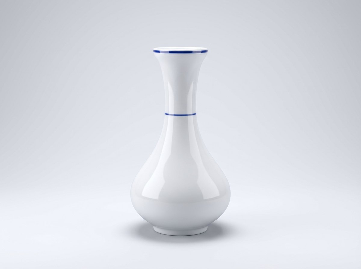• Balta keraminė vaza su subtiliu mėlynu apvadu
