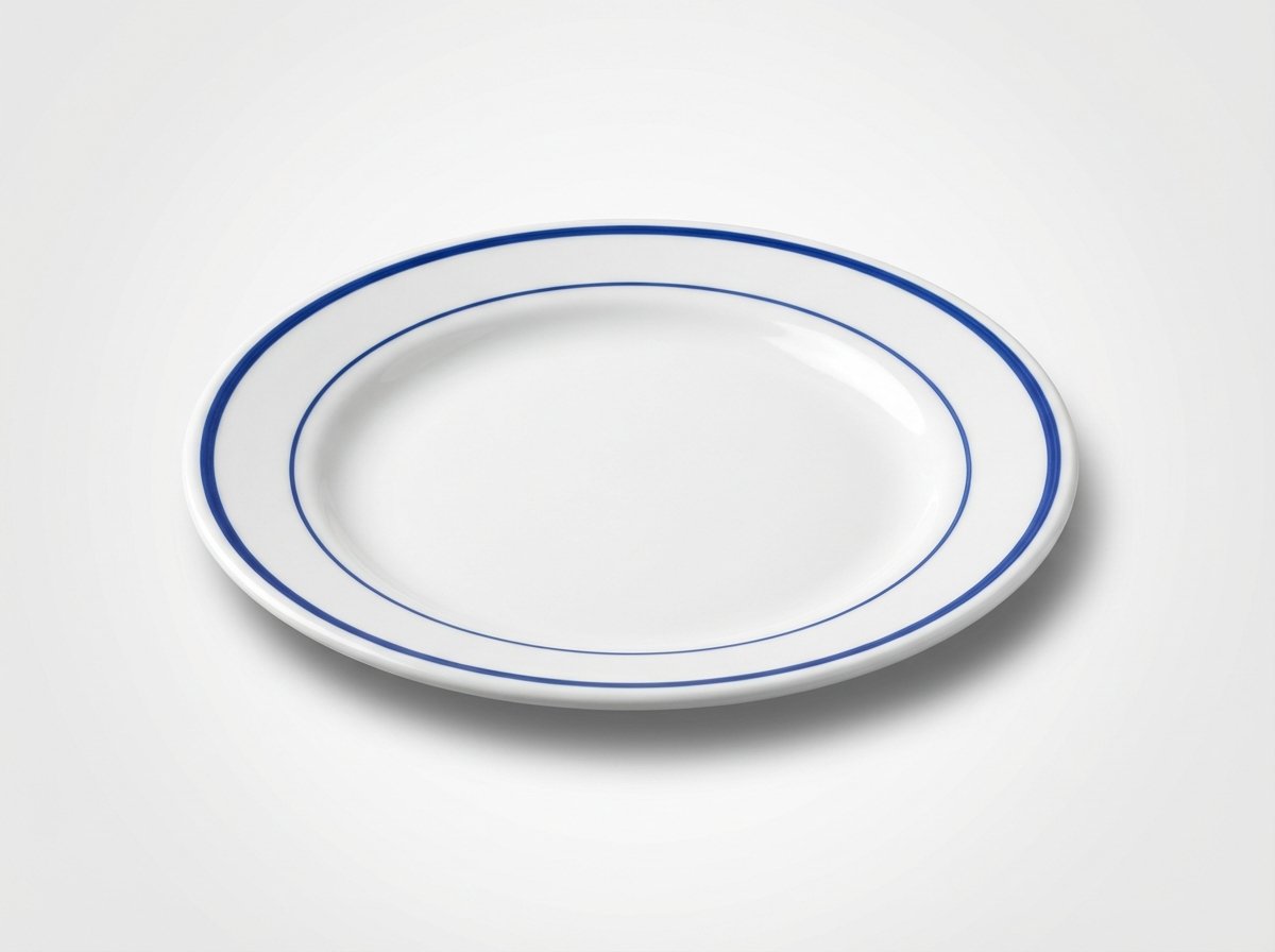 • Produkto pavadinimas: Balta lėkštė su mėlynu apvadu