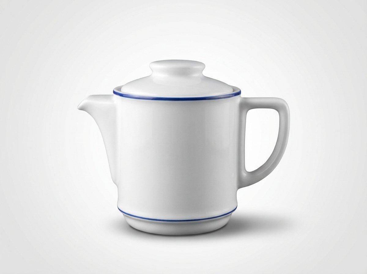 Neutralios baltos spalvos arbatinukas su plona mėlyna juostele lengvai dera prie įvairių indų ir stalo prekių rinkinių. Klasikinė forma ir patogi rankena užtikrina patogų pylimą, o dangtelis padeda ilgiau išlaikyti gėrimo šilumą.