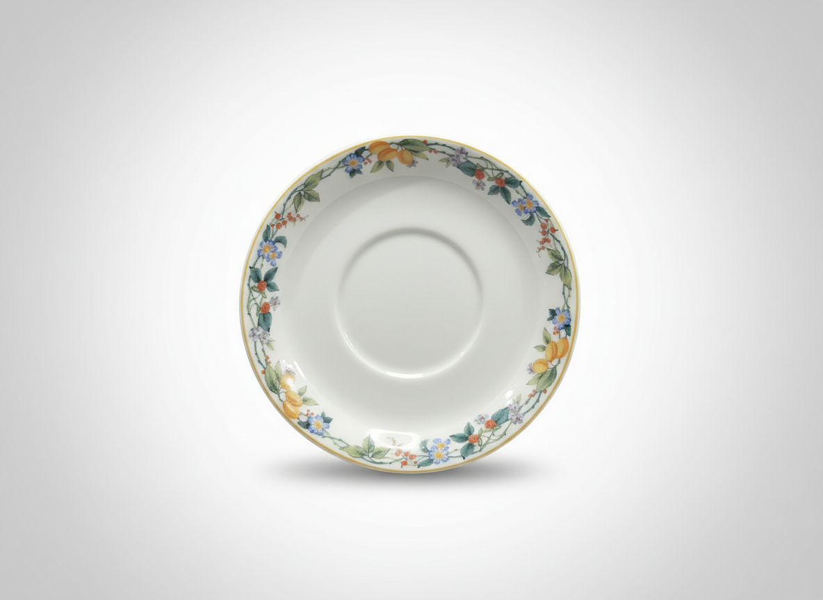 Ryški ir elegantiška gėlių rašto lėkštutė 15 cm puikiai tinka arbatos ar kavos puodeliui, desertui ar nedideliam užkandžiui. Klasikinė balta spalva su spalvingu žiedų ornamentu lengvai dera prie įvairių indų rinkinių.