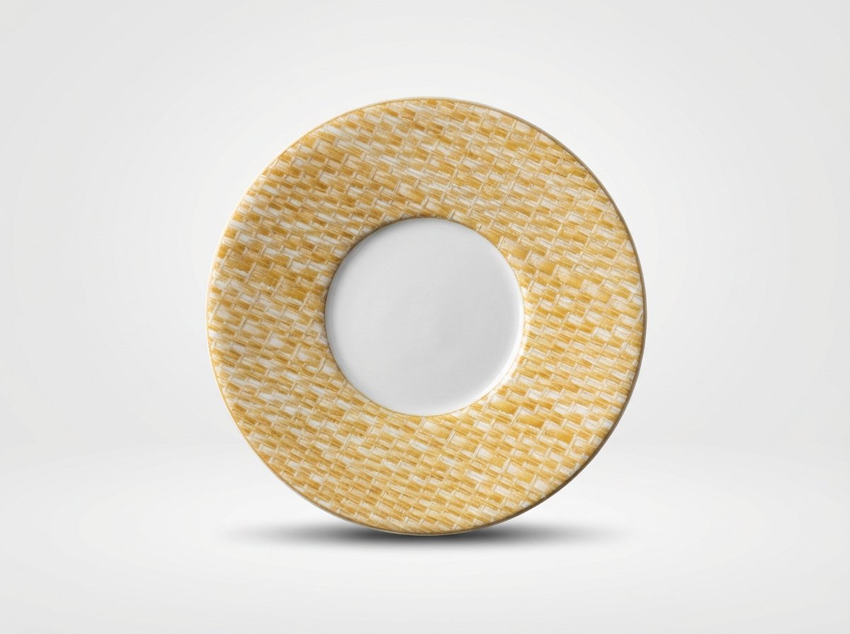 Universalus lėkštės padėkliukas R14 cm su geltonu pintu raštu puikiai papuoš Jūsų stalą ir suteiks jaukumo tiek kasdieniams pietums, tiek šventinėms progoms.