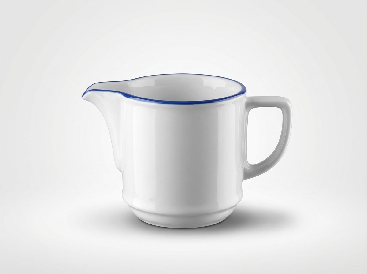 Baltas keramikinis pieno ąsotėlis 230 ml su mėlynu krašteliu