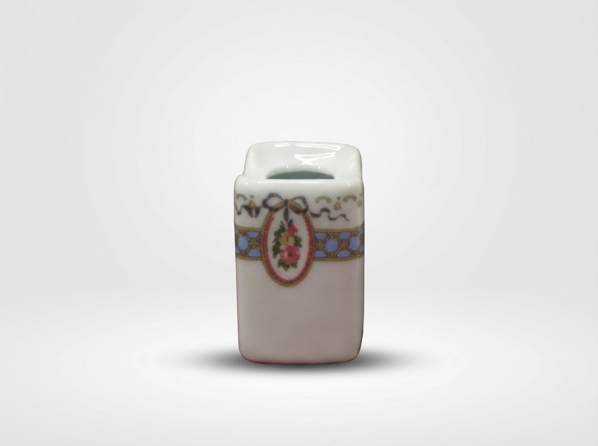 Mažas dekoratyvinis porcelianinis indelis, puikiai tinkantis smulkiems prieskoniams, padažui ar kitoms nedidelėms porcijoms patiekti. Kompaktiški matmenys leidžia patogiai statyti ant stalo ar lentynos.